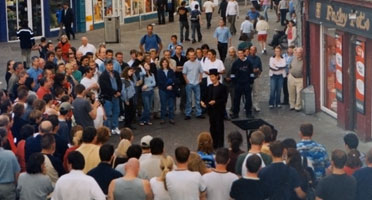 The Festival Act was designed for street fairs, festivals and open air events. With this show no stage or announcement is needed. Dante simply sets up and within minutes there is a large crowd around him trying to get a good look.