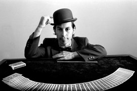 The Close up Show is most often the best choice for large events where you desire the festivities and other activities to take place simultaneously with the entertainment. Dante simply sets up a small table and people gather around him as he presents shorter, continuous sets throughout the evening.